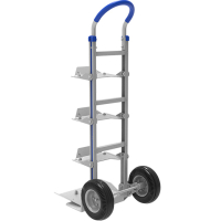 Візок оснащений напівпневматичними колесами діаметром 10", які легко долають нерівності підлоги та забезпечують плавність ходу. Завдяки зручній ручці з нековзним покриттям, користувач отримує максимальний контроль і комфорт навіть під час транспортування важких бутлів.